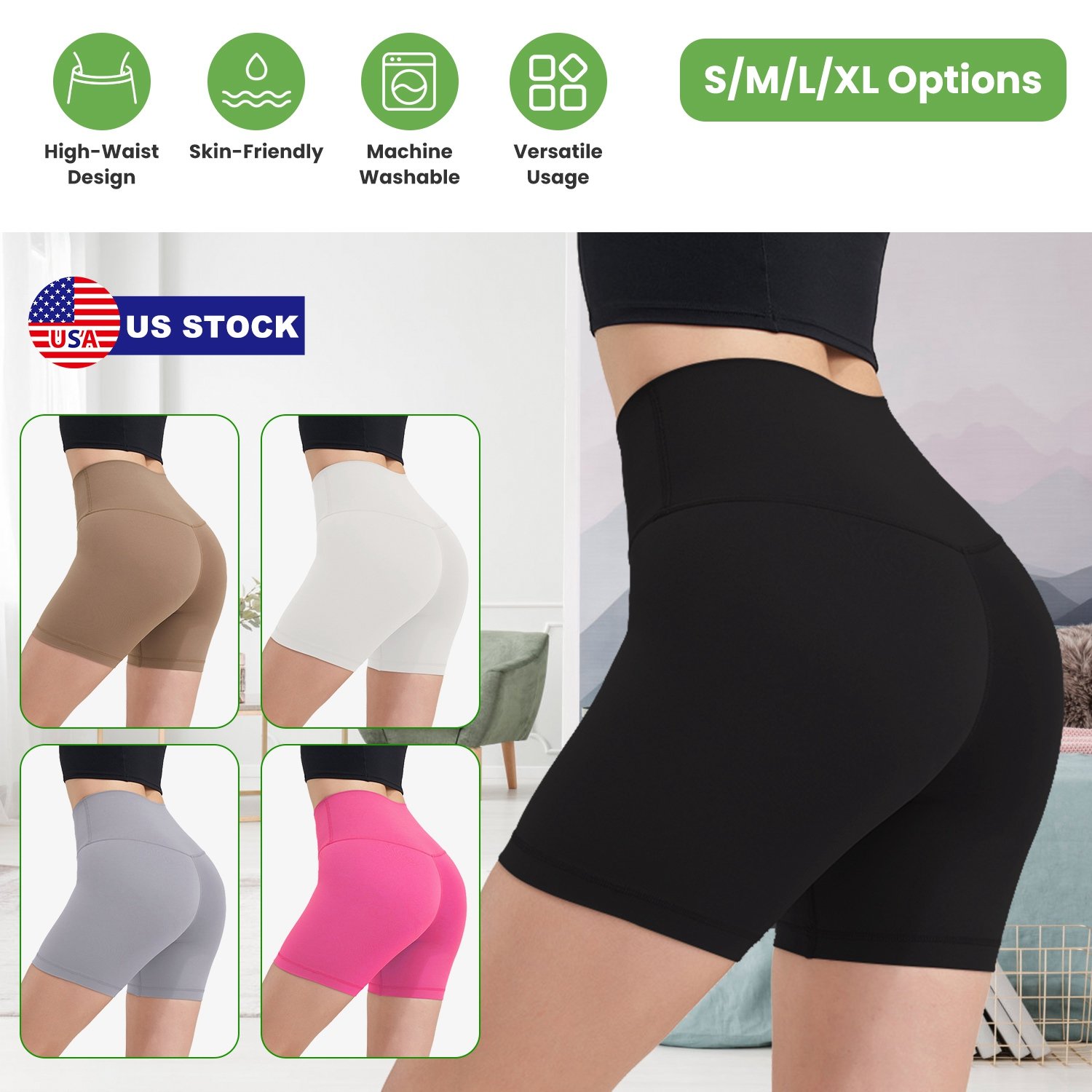 Our high-waist biker shorts made from 80% Polyamide and 20% Elastane, give you freedom of movement no matter what you’re doing and provide you with the most comfortable feelings and elegance all the time. The widened high waisted band is great to provide sturdy support to help your tummy control and cover navel. A straight seam on the buttock is great to contour your curves. And no front seam design ensures smooth lines and added comfort. Super soft, skin-friendly, stretchable and moisture-wicking, ensuring ease of movement. Optimal for cycling, workouts, yoga, and everyday fashion. Pink, Grey, Coffee, Ivory, Black is available to choose as you need.